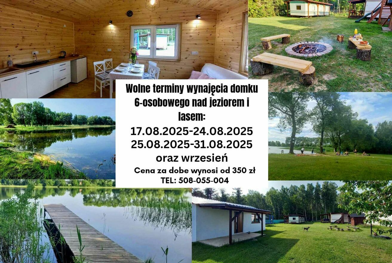 Do zaoferowania mam 3 domki nad jeziorem I lasem. Domki są w pełni wyposażone, 6 osobowe. Możliwość wypożyczenia roweru wodnego oraz balii mobilnej. Na miejscu znajduje się plac zabaw, miejsce na ognisko, trampolina, siatkówka, koszykówka. Możliwość łowienia ryb na naszym pomoście oraz zbieranie grzybów i jagód. Jeśli cenisz ciszę i spokój to jest to miejsce dla Ciebie.Sprawdź zainteresowanie tym ogłoszeniem